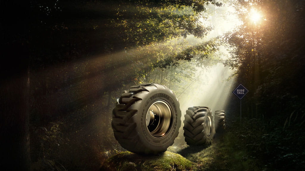 Quando la foresta mostra il suo aspetto più difficile, le scanalature trasversali ed il profilo ampio e piatto dello pneumatico garantiscono all' applicazione una compatibilità ed una tenuta dei cingoli ottimali .Tale forza di trazione dei pneumatici è riscontrabile anche senza l'uso dei cingoli. In Trelleborg siamo convinti che il settore agricolo assumerà un ruolo trainante nell'affrontare le sfide ambientali future.