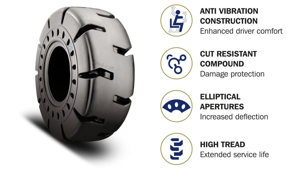 Levererar högsta körkomfort och slitstyrka inom segmentet massivdäck.